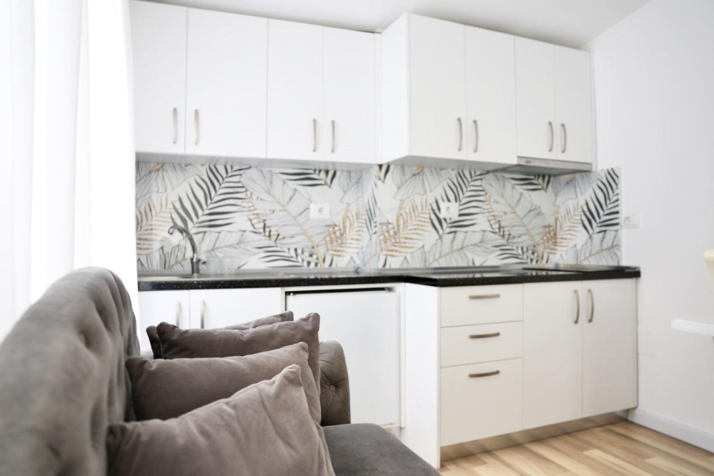 One-Bedroom Apartment with Garden. Featuring a private entrance, this air-conditioned apartment is comprised of a kitchen, 1 bedroom and 1 bathroom with a walk-in shower and a hairdryer. In the well-equipped kitchen, guests will find a stovetop, a refrigerator, kitchenware and an electric kettle. Boasting a terrace with garden views, this apartment also offers a seating area and a flat-screen TV with streaming services. The unit offers 2 beds.
