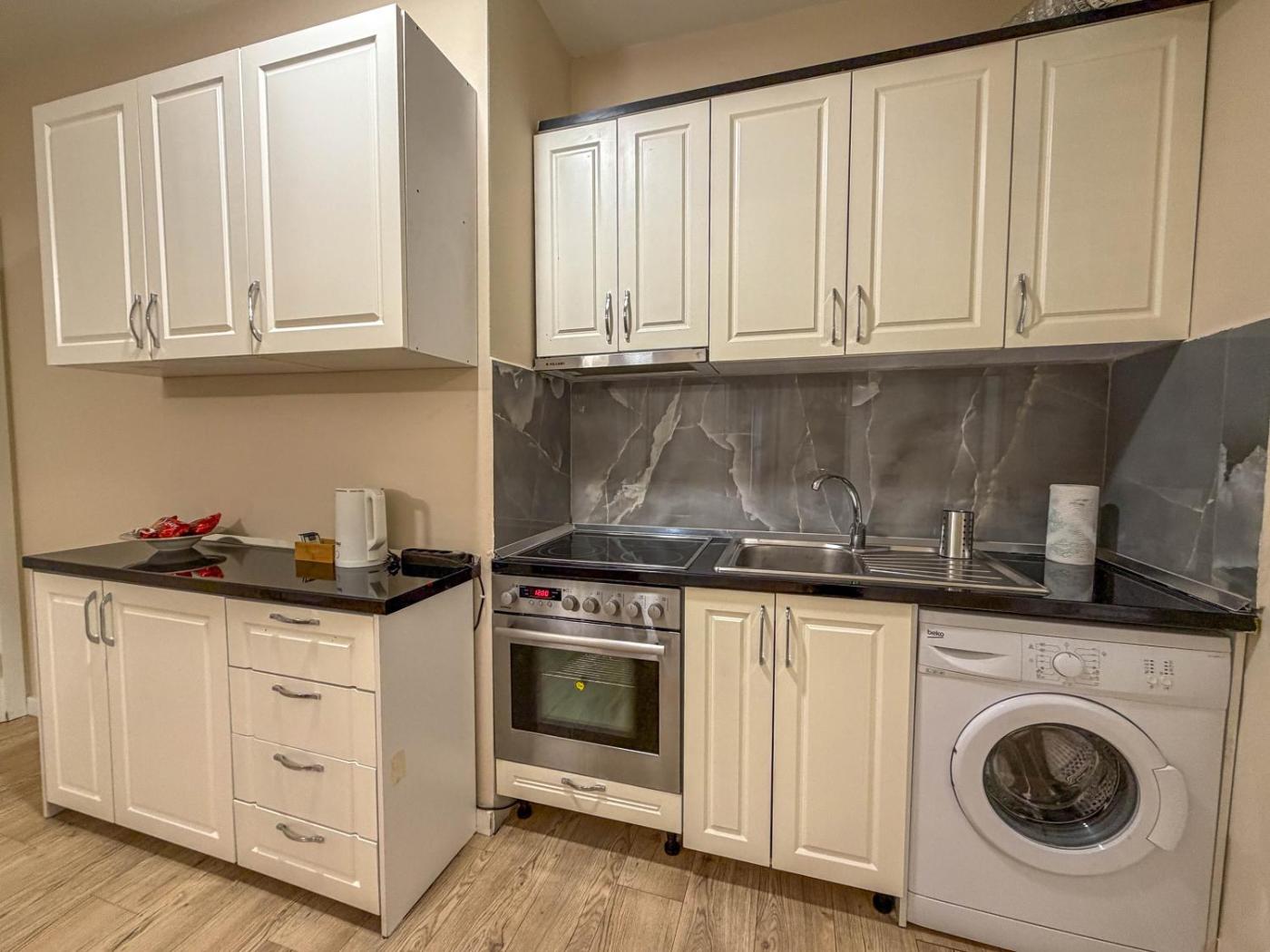 One-Bedroom Apartment with Window and City View. This apartment consists of 1 living room, 1 separate bedroom and 1 bathroom with a shower and free toiletries. The well-equipped kitchen features a stovetop, a refrigerator, kitchenware and an oven. The air-conditioned apartment provides a flat-screen TV, a washing machine, a seating area, a wardrobe as well as city views. The unit offers 1 bed. ;