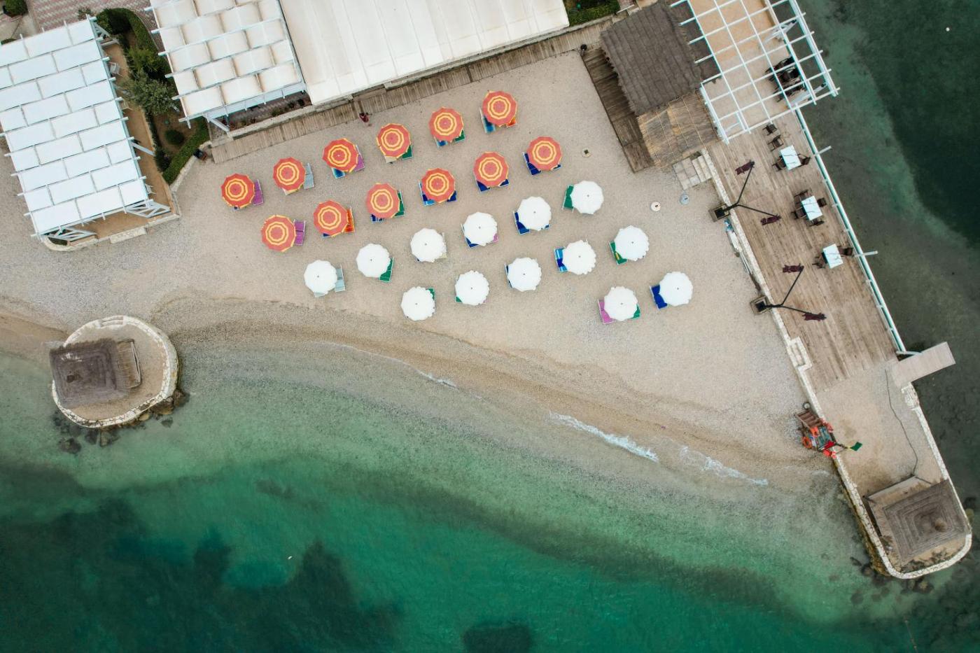 Located in Vlorë, a few steps from Radhimë Beach, Grand Hotel Aita provides accommodation with a garden, free private parking, a private beach area and a terrace. Among the facilities of this property are a restaurant, room service and a 24-hour front desk, along with free WiFi throughout the property. Guests can have a drink at the bar.